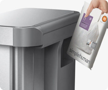 Store liners in the liner pocket, pull a fresh liner out from inside the can, and close the liner rim to hide the liner and keep it in place.