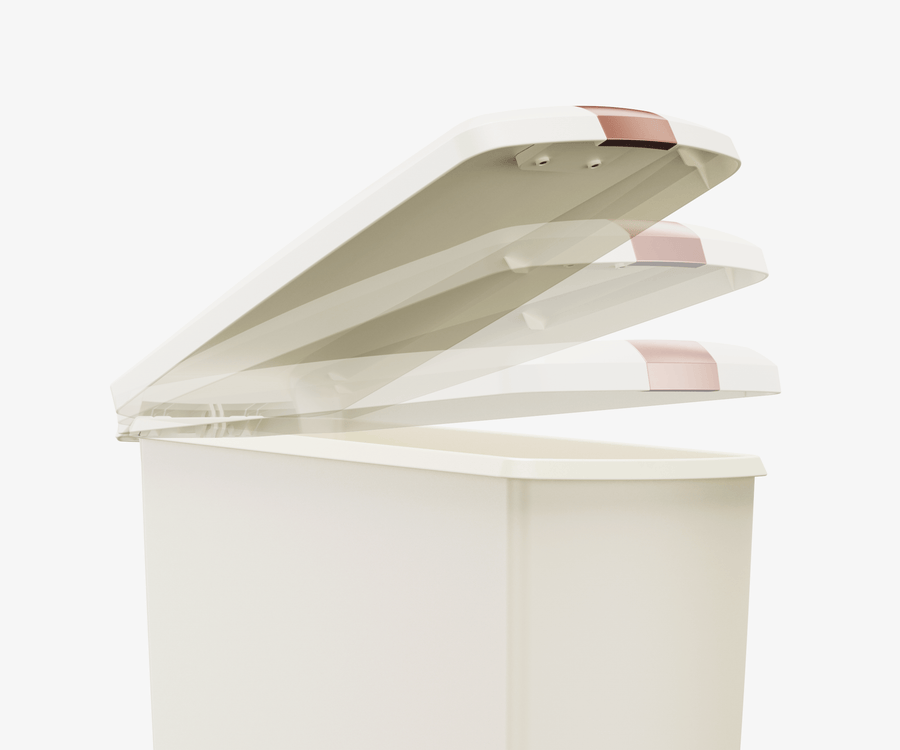 An integrated slide lock glides smoothly into place, securing the lid shut to keep pets and curious kids out of your trash.