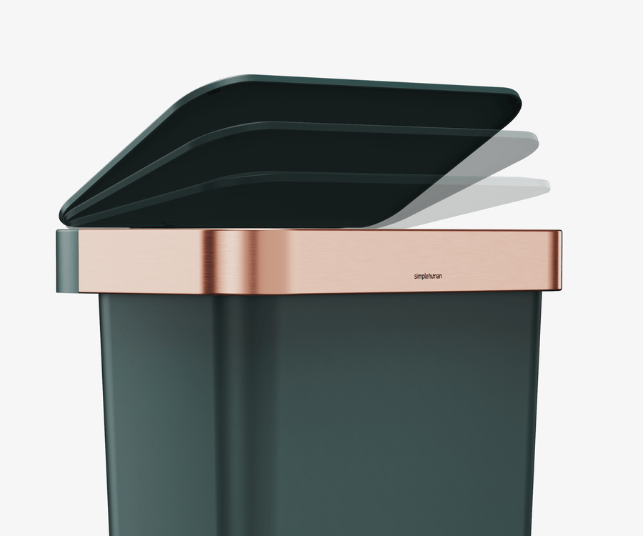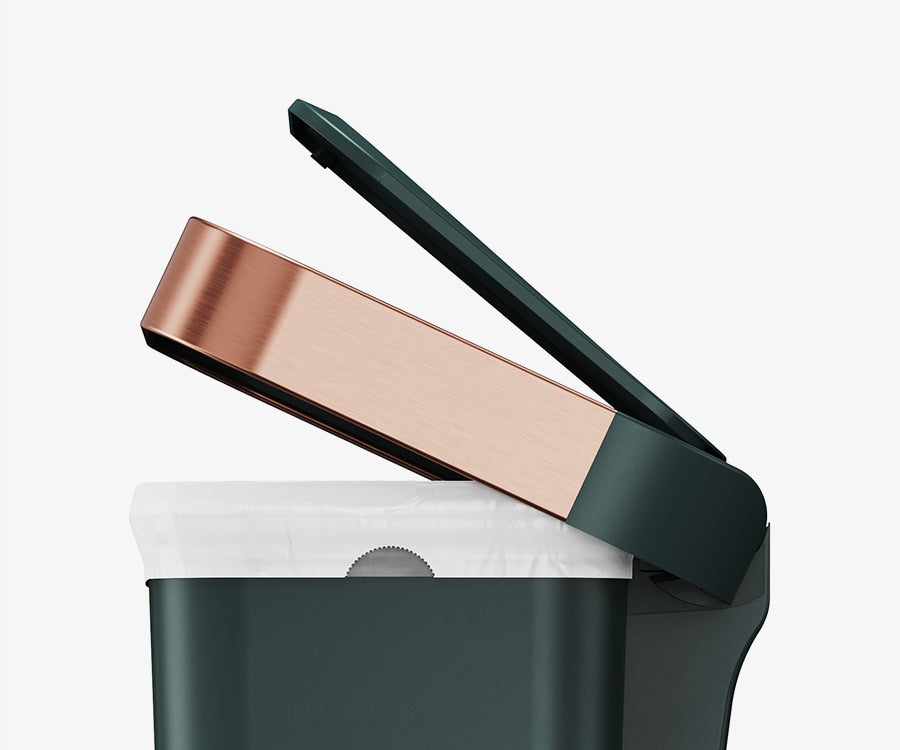 Our liner rim system makes trash faster and neater. Simply lift the lid for easy access, then close it to keep the liner tidy and out of sight.