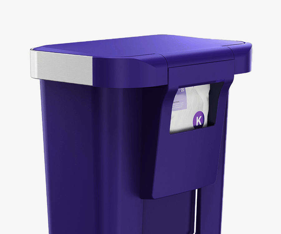 Our liner rim system makes trash faster and neater. Simply lift the lid for easy access, then close it to keep the liner tidy and out of sight.