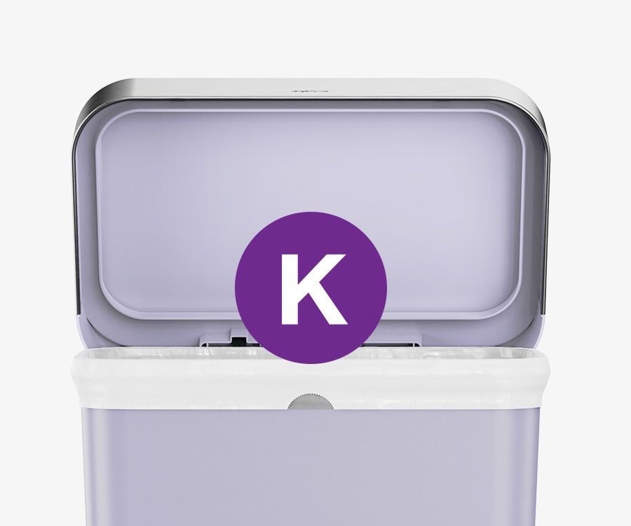 Our liner rim system makes trash faster and neater. Simply lift the lid for easy access, then close it to keep the liner tidy and out of sight.