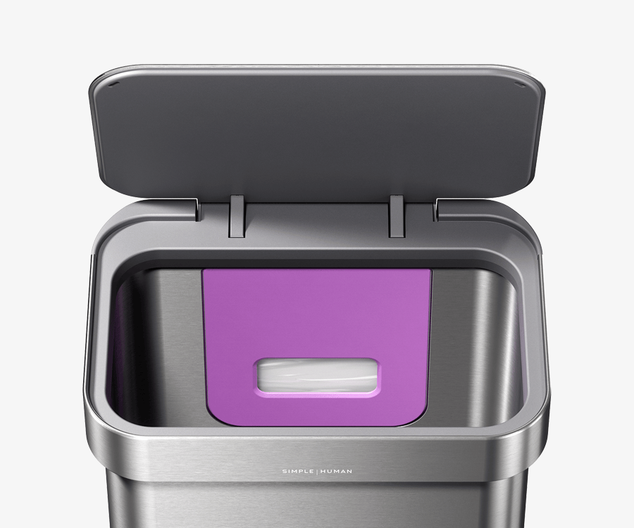 Our liner rim system makes trash faster and neater. Simply lift the lid for easy access, then close it to keep the liner tidy and out of sight.